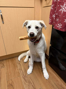 I am the most lazy, loving and cuddliest puppy. I love to stay right by my humans side. I’m always looking for someone to pet me. I love to sit for hours chewing on bones. I’m starting to learn fetch but I get bored and lay down after a couple of throws. I am potty trained and still working on being kennel trained. I am eager to learn if you have treats. I’m not too picky on where I’d like to live as long as I get a good walk in and have a cuddle buddy. I’ve never been around little kids or cats but I am very gentle and loving.