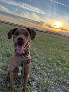 My name is Landrey. I am a happy and active pup. I'm not sure what I am all mixed with - I am leggy and sort of lean currently. I have a beautiful red brindle coat and these super cute ears and pretty eyes.