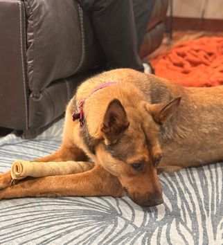 This sweet girl is the perfect blend of playful and snuggly. She loves her daily walks, happily chews on a good bone, and truly thrives on being close to her people—whether that means curling up beside you or gently (and confidently) climbing into your lap for some quality cuddle time.