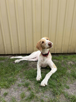 Oscar is a lovable, playful dog and a quick learner who is ready to please. He loves people, tennis balls, and outdoor adventures. Oscar walks well on a leash, though he can get excited when another dog passes by. He enjoys roaming fields, too, and comes right to your side when called. Oscar is super smart and thrives in training. He has quickly mastered commands that can be used at home or while hunting, such as  “heel,” “come”, “sit”, “place,” and “free.” He is kennel- and potty-trained and has had no accidents or marking in his foster home. Oscar forms a tight bond with his main person and sticks close, showing no inclination to run off. Indoors, Oscar entertains himself chewing on bones and toys that squeak and snuggling up for belly rubs.