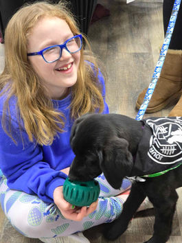 Peanut is very smart, active. And absolutely loves playing with young kids. She is friendly with other dogs and cats. She rings the bells on the door to go outside to potty. She quickly learned to sit. Extremely trainable quickly. She would love to be on the go with you!