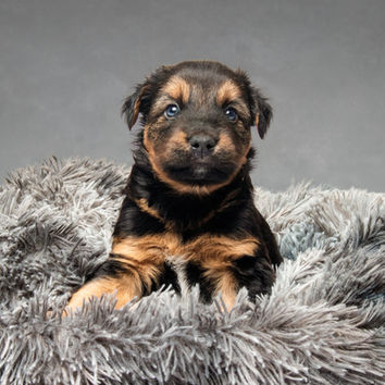Hi! I’m Topaz, an 8-week-old puppy with a shy, reserved personality as I’m learning just how big the world can be. I feel most comfortable being held or play-wrestling with my siblings while I build my confidence. I’m still very young and figuring things out, so I’ll do best with a patient, loving home that lets me grow at my own pace. With time, reassurance, and lots of cuddles, I know I’ll blossom into a wonderful companion. Apply to meet me!