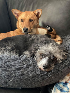 I came into rescue feral  and had no idea what human interaction was until I met my foster mom. My adjustment period was difficult and I could not go outside to potty until we trusted each other. It took several weeks to get familiar with the routines and new environment. The adjustment helped tremendously with other canine friends to help. I followed their lead and even got to go outside to potty and catch on quickly. I’m a very smart girl! I am nowhere near being a "normal" dog. I do not walk on a leash, in fact right now I hate them. I also have to travel to the vet in a kennel.